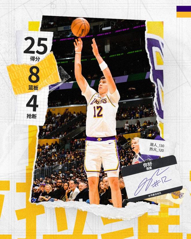 東契奇引領(lǐng)湖人6人得分上雙戰(zhàn)勝熱火,外加里夫斯26分11助攻,他們組成強(qiáng)力后場(chǎng)雙槍。至于拉拉維亞打出加盟湖人最強(qiáng)一戰(zhàn),他13中10高效得到25分8籃板3助攻。